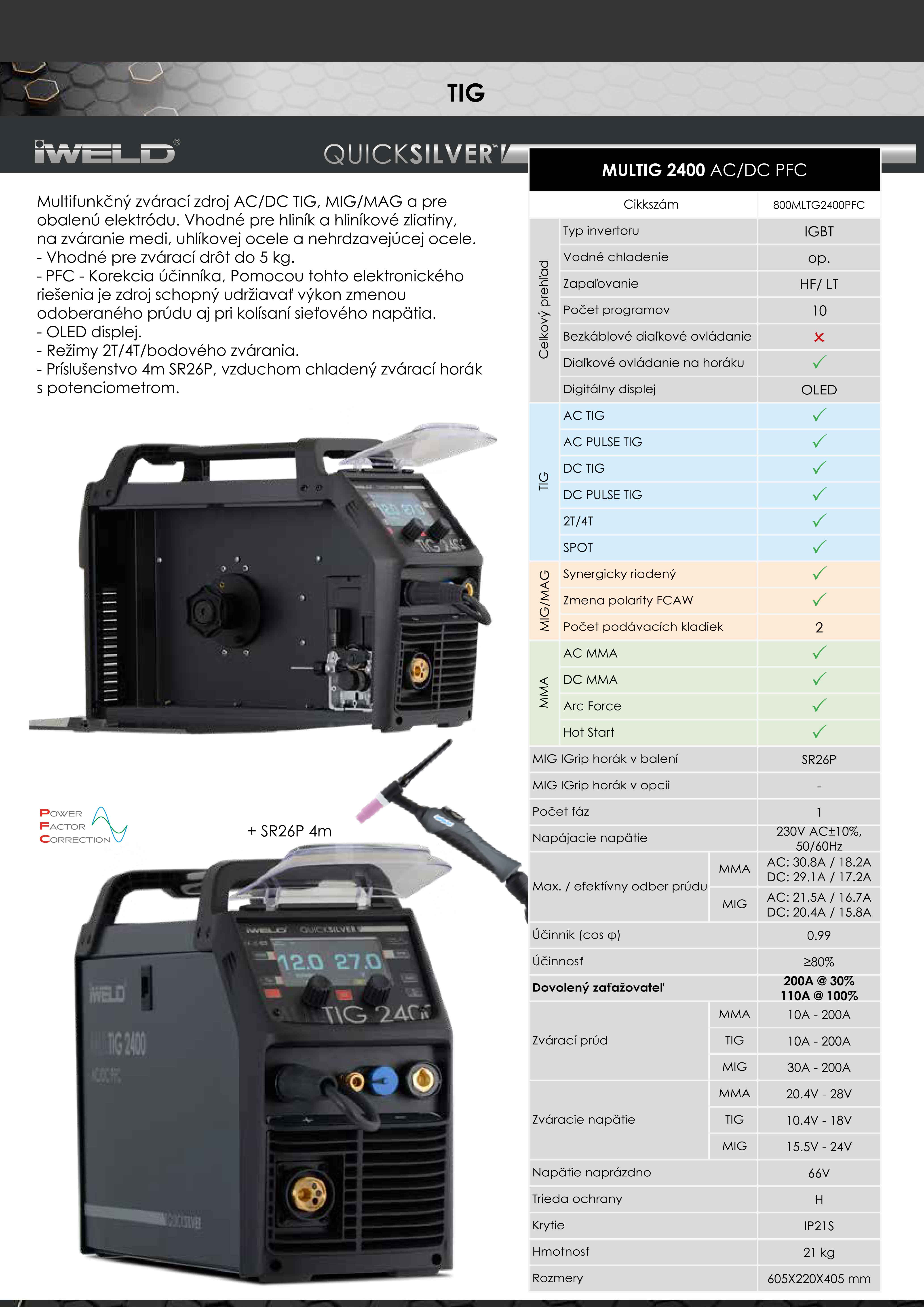 Obsah balenia: zvárací invertor, sada káblov 3m, zvárací horák tig IGRIP SR26P, zvárací horák mig IGRIP 150/4m